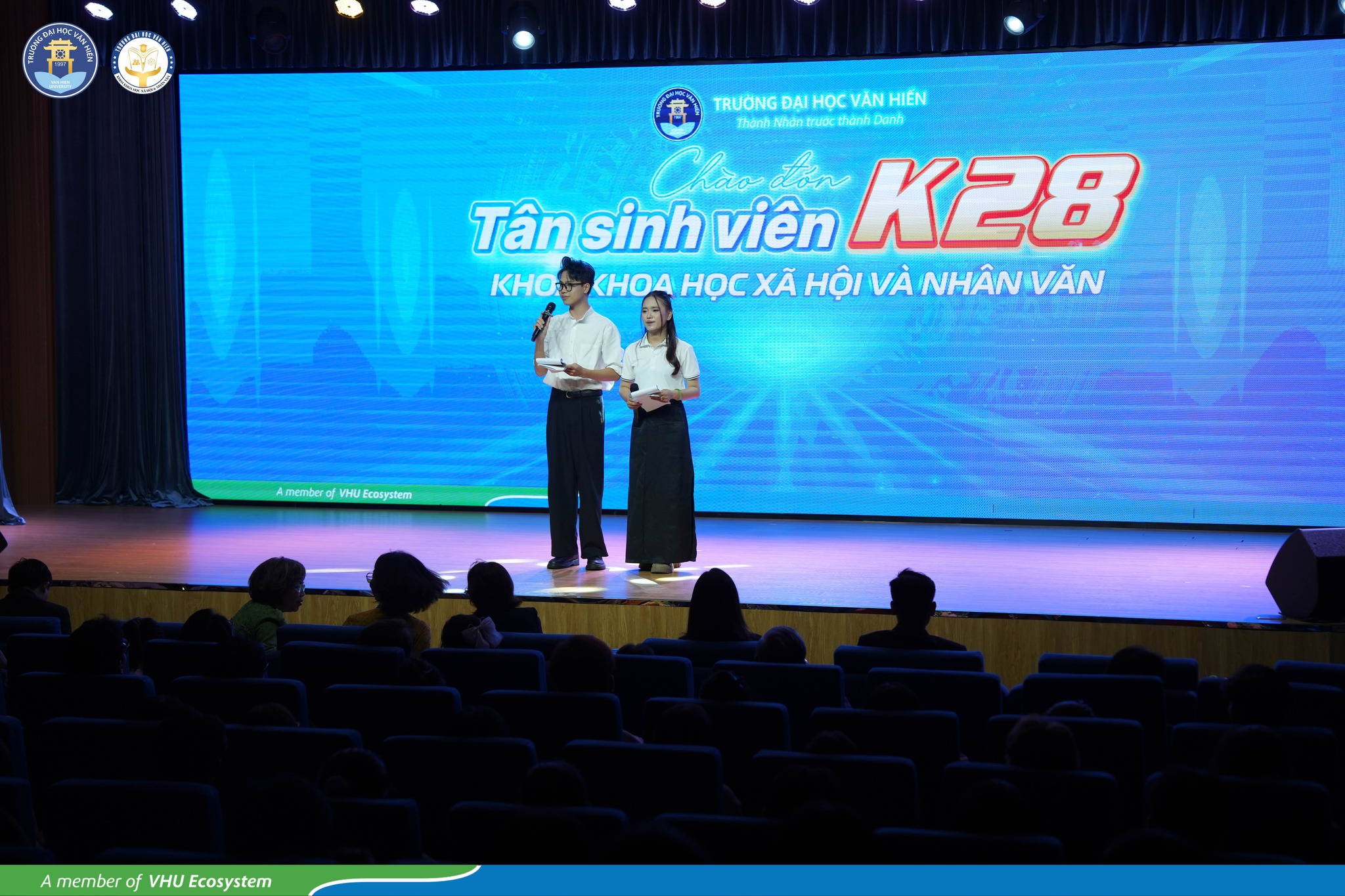 Vào ngày 30/9/2025, 1/10/2025, và ngày 4/10/2025, tại Hội trường Trần Hưng Đạo (HEC), Khoa Khoa học Xã hội và Nhân văn, trường Đại học Văn Hiến đã chào đón các bạn Tân sinh viên K28 của ngành Quan hệ công chúng, Truyền thông đa phương tiện, ngành Hàn Quốc học, Trung Quốc học, Việt Nam học, Xã hội học, Tâm lý học, và Quan hệ quốc tế trong không khí hân hoan và tràn đầy nhiệt huyết của sức trẻ. Sự nhiệt huyết đến từ những màn hoạt náo sôi nổi, hòa cùng với các tiết mục văn nghệ đặc sắc, đa sắc màu, và đầy sức cuốn hút, cùng với phần giao lưu đầy năng lượng, đã mang đến cho các sinh viên K28 một những cảm xúc trọn vẹn trong những ngày đầu tiên tại ngôi nhà Văn Hiến.