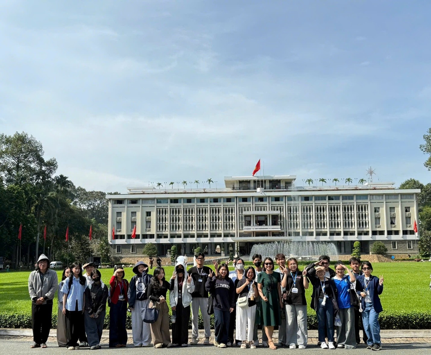 Ngày 17/10/2025, các bạn sinh viên thuộc lớp học phần 251POL10503 - Triết học Mác – Lênin dưới sự hướng dẫn và giảng dạy của ThS. Đoàn Thị Huế - Giảng viên Bộ môn Lý luận Chính trị thuộc Khoa Khoa học Xã hội và Nhân văn, trường Đại học Văn Hiến đã có chuyến thăm quan, trải nghiệm thực tế tại Dinh Độc Lập, nằm trên đường Nam Kỳ Khởi Nghĩa – Thành phố Hồ Chí Minh.