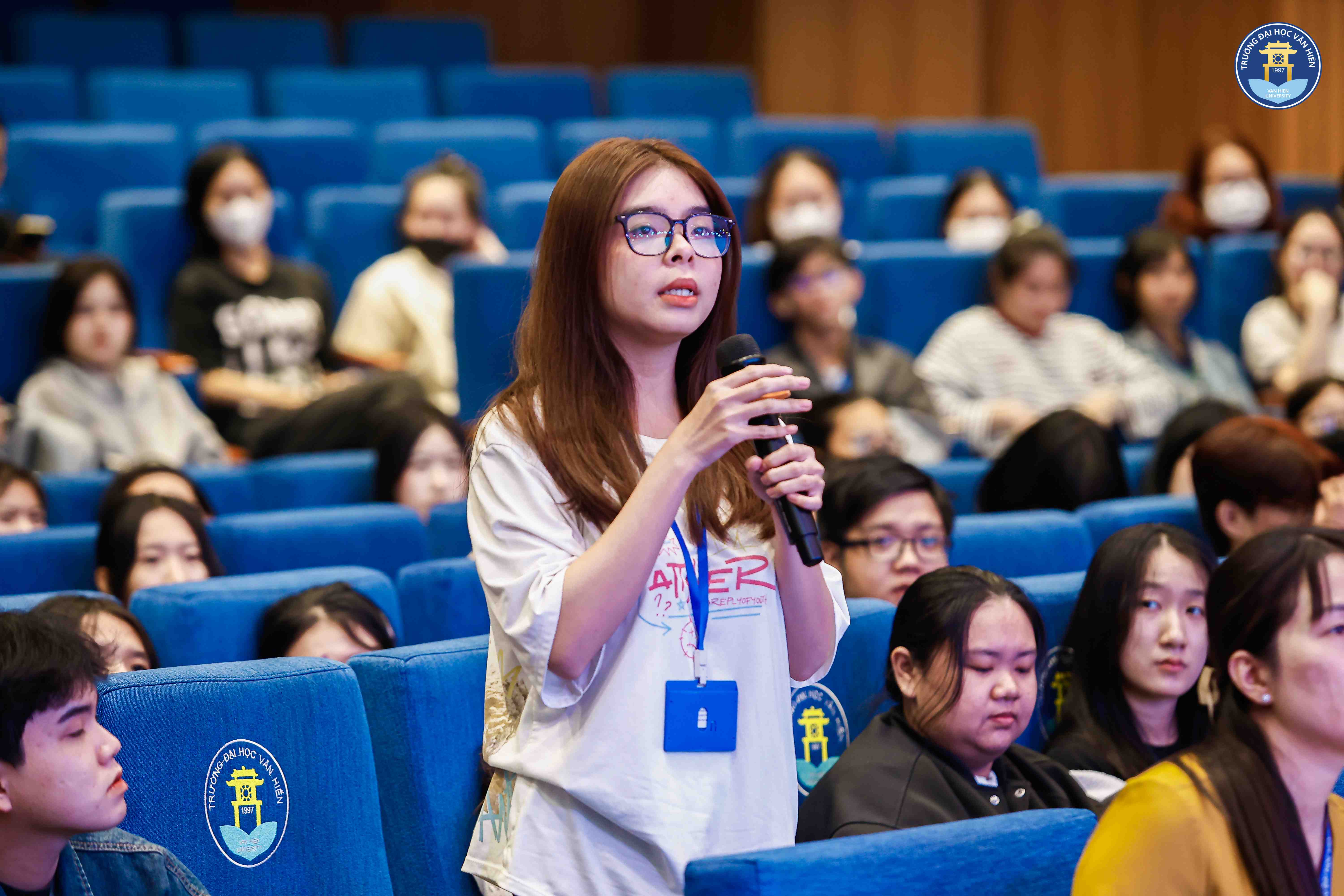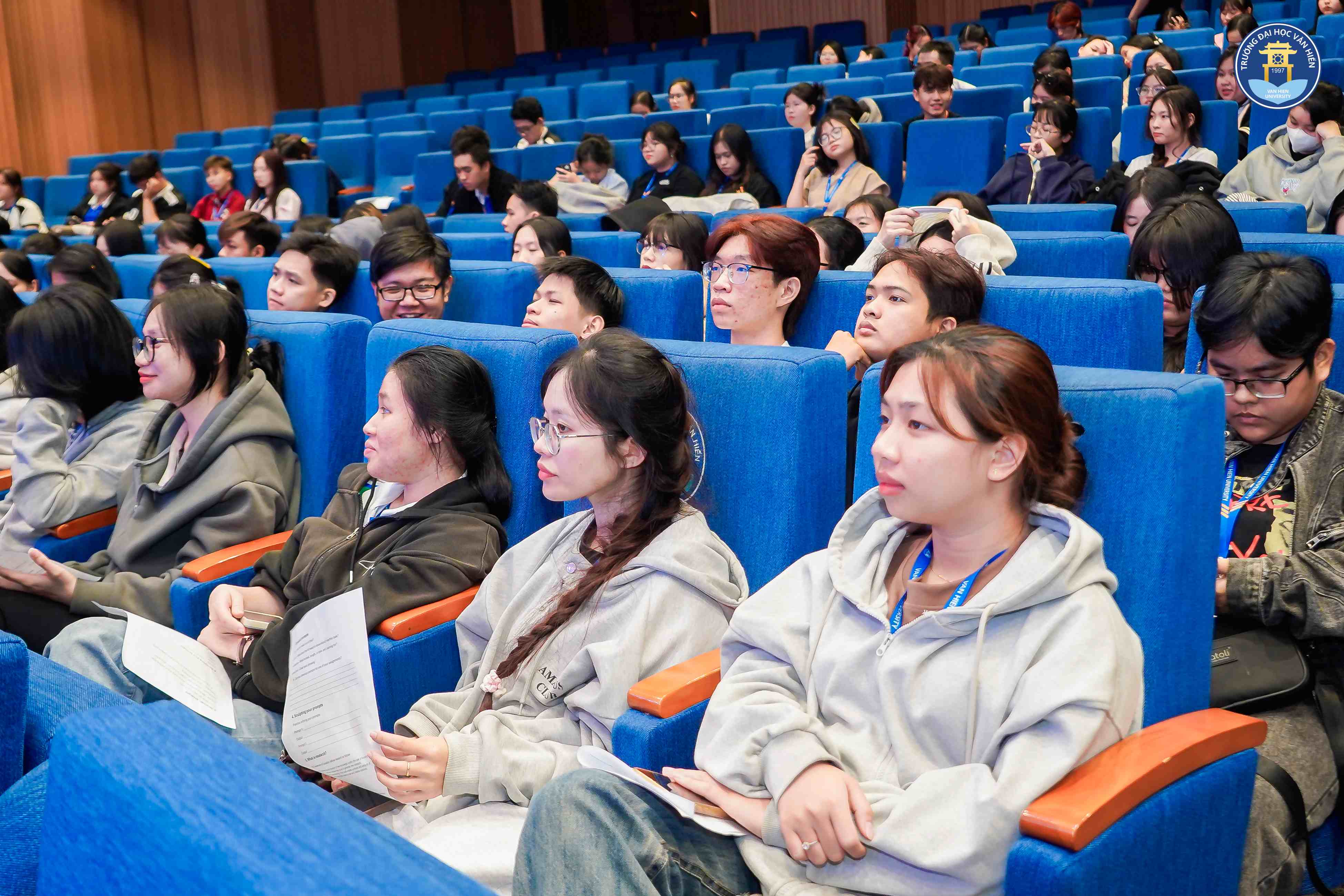 Chương trình có sự chia sẻ chuyên sâu của TS. Đinh Ngọc Thủy – chuyên gia trong lĩnh vực đào tạo và quản lý nghiên cứu học thuật quốc tế. Nội dung tập huấn tập trung giúp sinh viên nhận diện bối cảnh nghiên cứu khoa học hiện nay, đồng thời hiểu đúng vai trò của trí tuệ nhân tạo (AI) trong hoạt động học thuật, từ cơ hội hỗ trợ đến những thách thức về đạo đức và chuẩn mực nghiên cứu.